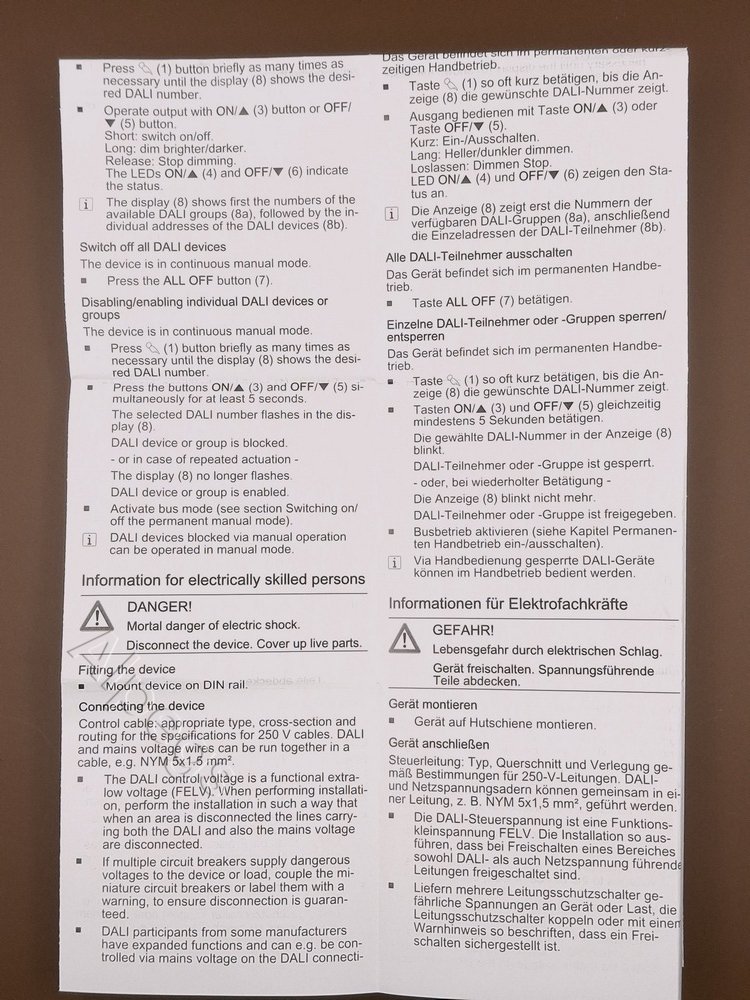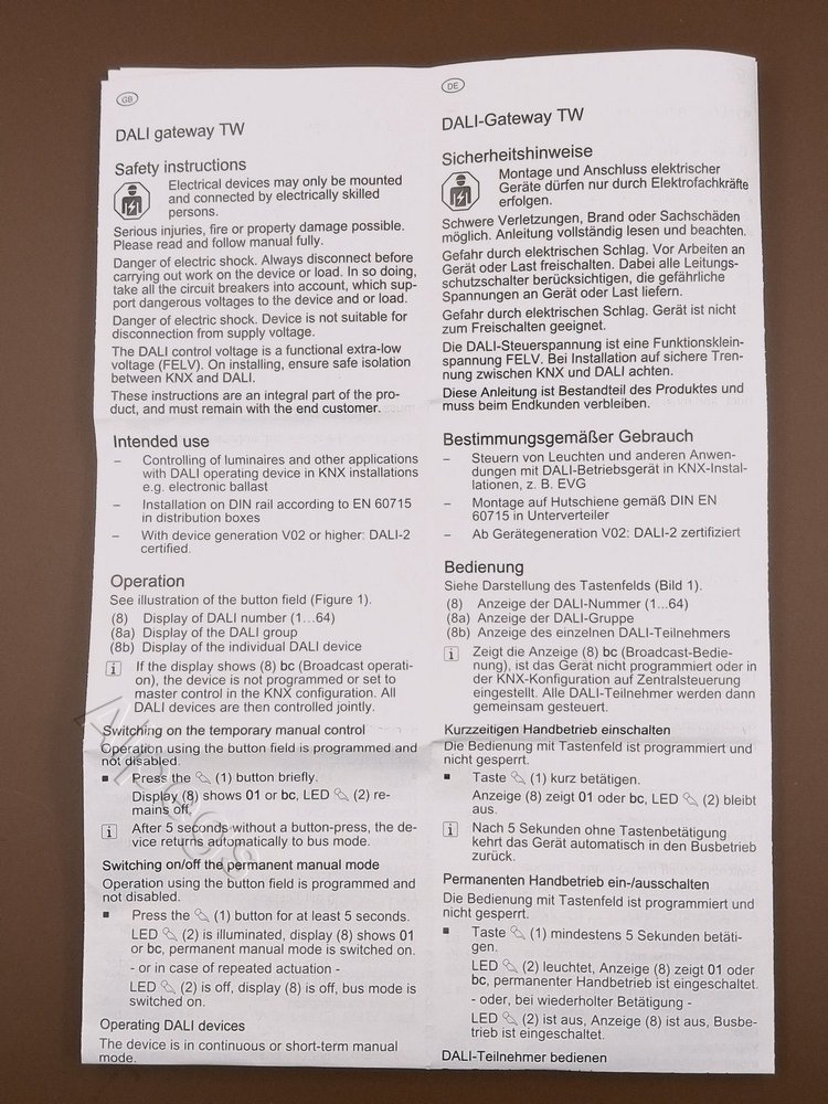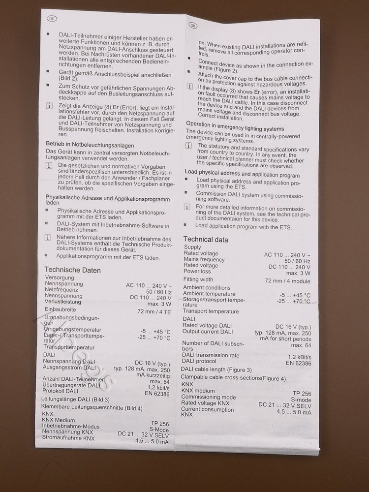 • Данные о состоянии DALI-устройств через KNX, например, освещённость или неправильная работа ламп