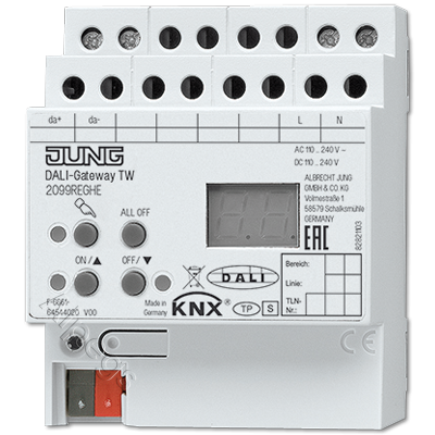 • Управление светильниками и другими устройствами DALI в инсталляции KNX, например, электронными балластами