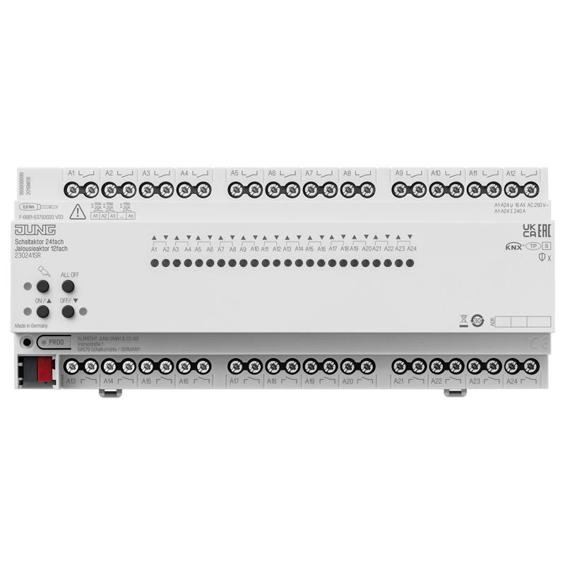 KNX актуатор коммутирующий, 24 группKNX актуатор жалюзи, 12 групп