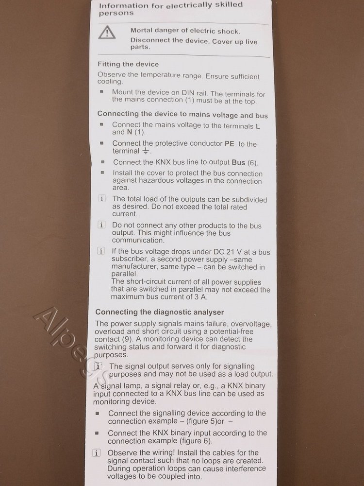 • Подключается параллельно с идентичным источником питания KNX (до тех пор, пока не будет достигнуто максимальное напряжение короткого тока)