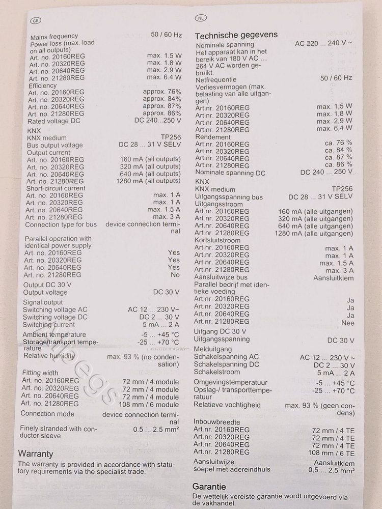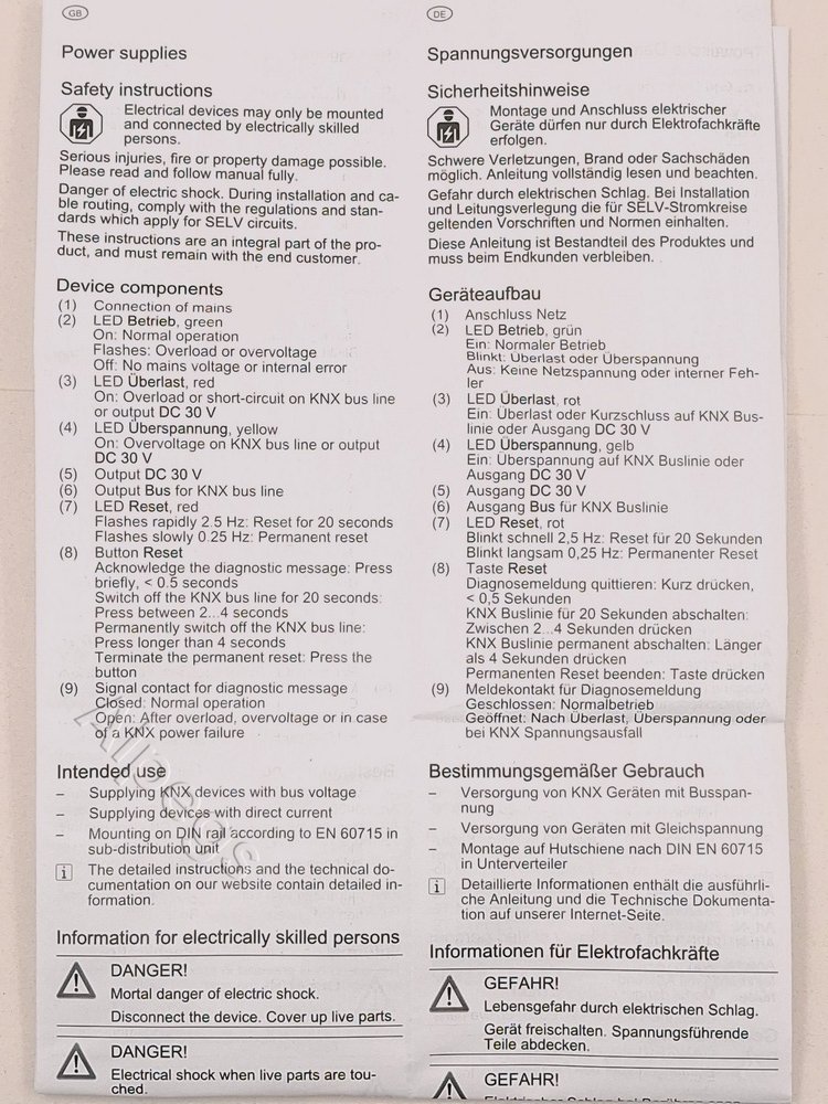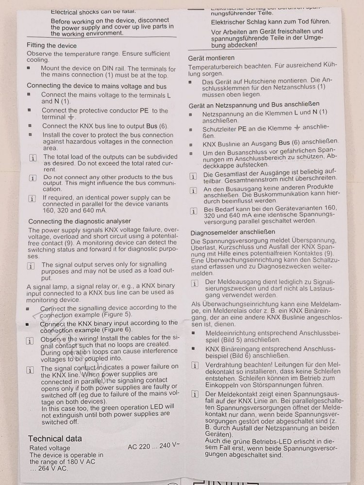 • Подключается параллельно с идентичным источником питания KNX (до тех пор, пока не будет достигнуто максимальное напряжение короткого тока)