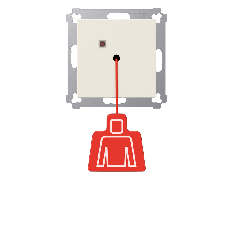 Легко доступный в ванной комнате или туалете шнурок от кнопки вызова. Чтобы быть легче доступным для людей, нуждающимся в помощи, она может быть также расположена на потолке в середине комнаты. Красная лампочка на кнопке вызова сигнализирует, что сигнал успешно передан.