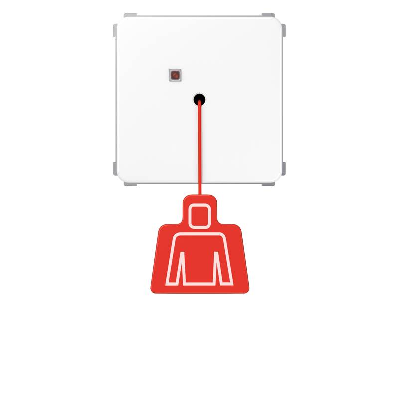 Легко доступный в ванной комнате или туалете шнурок от кнопки вызова. Чтобы быть легче доступным для людей, нуждающимся в помощи, она может быть также расположена на потолке в середине комнаты. Красная лампочка на кнопке вызова сигнализирует, что сигнал успешно передан.