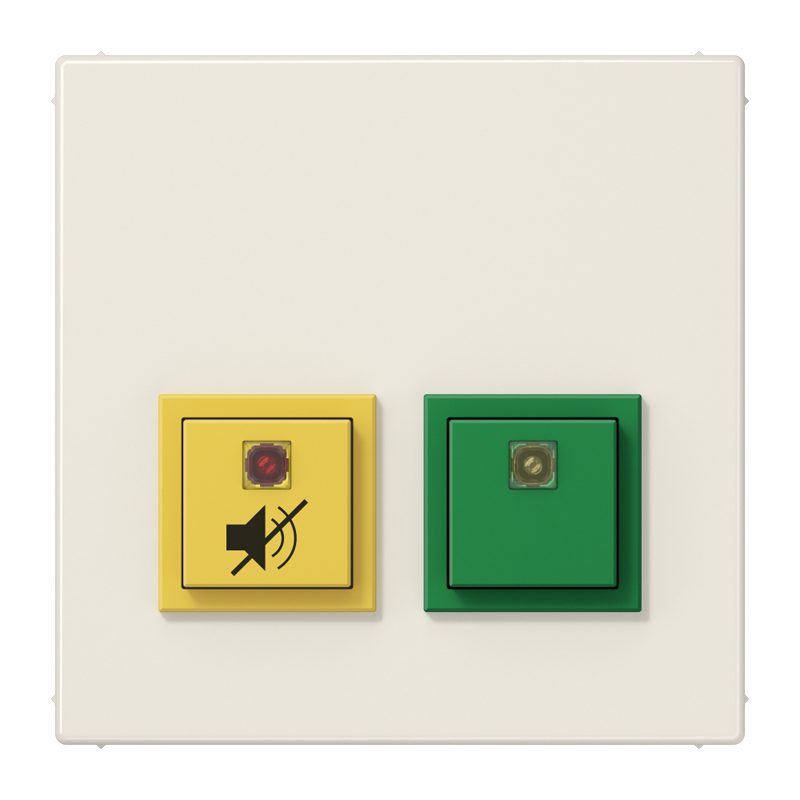 Сервисное устройство , сервисный терминал и кнопка вызова заказываются отдельно. Сервисное устройство может устанавливаться, например, в палате или приемной. Зеленая кнопка означает присутствие, нажатие желтой кнопки на 20 секунд активирует акустический сигнал сигнализатора.