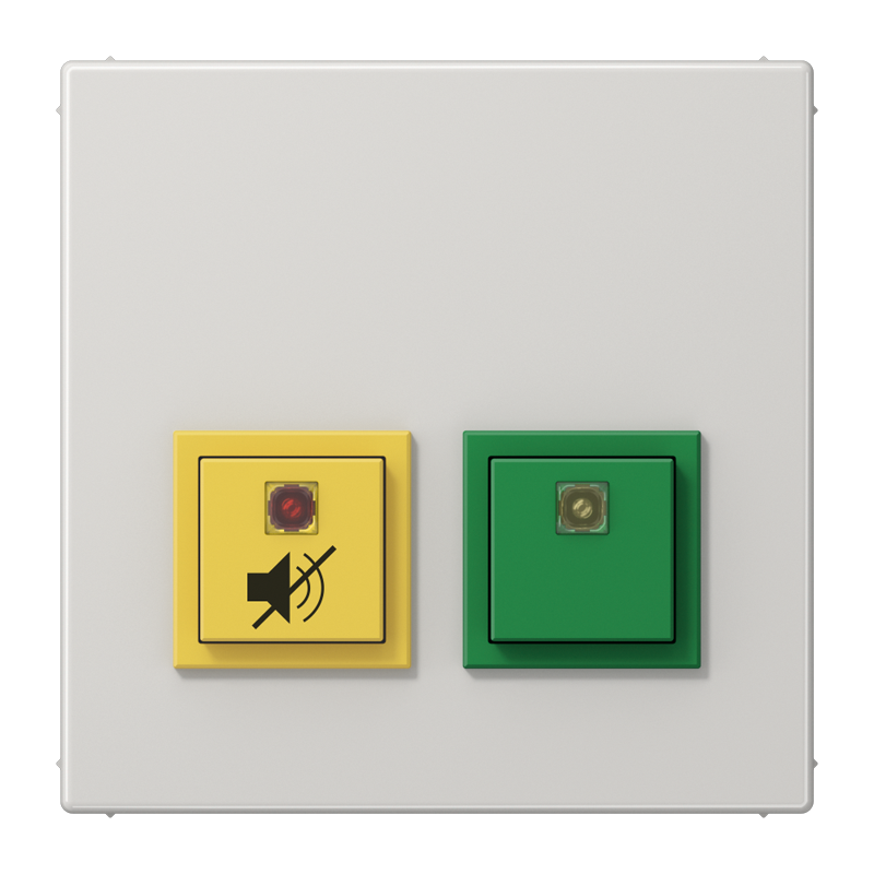 Сервисное устройство , сервисный терминал и кнопка вызова заказываются отдельно. Сервисное устройство может устанавливаться, например, в палате или приемной. Зеленая кнопка означает присутствие, нажатие желтой кнопки на 20 секунд активирует акустический сигнал сигнализатора.