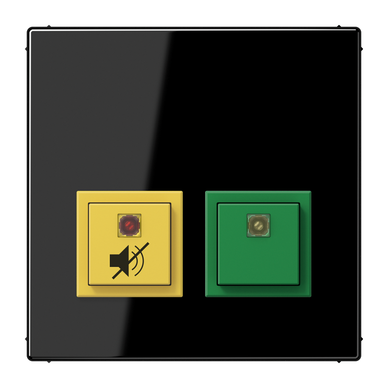 Сервисное устройство , сервисный терминал и кнопка вызова заказываются отдельно. Сервисное устройство может устанавливаться, например, в палате или приемной. Зеленая кнопка означает присутствие, нажатие желтой кнопки на 20 секунд активирует акустический сигнал сигнализатора.