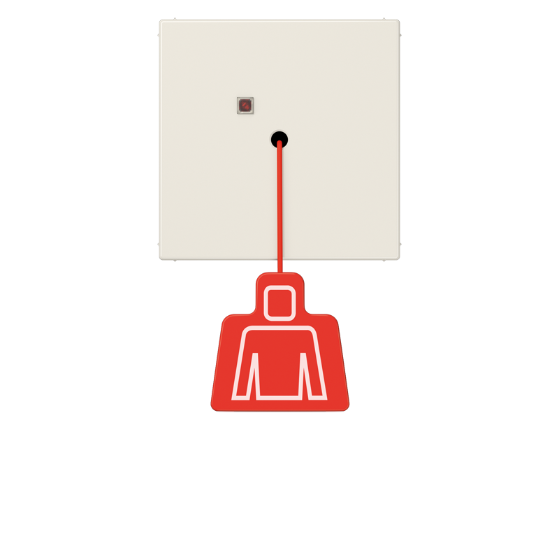 Легко доступный в ванной комнате или туалете шнурок от кнопки вызова. Чтобы быть легче доступным для людей, нуждающимся в помощи, она может быть также расположена на потолке в середине комнаты. Красная лампочка на кнопке вызова сигнализирует, что сигнал успешно передан.