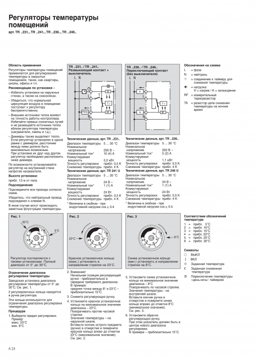 TR231U Регулятор температуры воздуха помещений, однополюсный, H3 контакт 10 (4) A, 250V