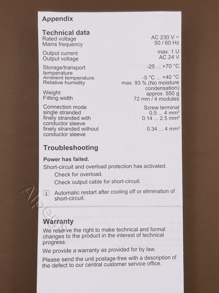 Блок питания ~ 24 V для арт. 2224 REGW, 2214 REGA, 2204.01 REGA
